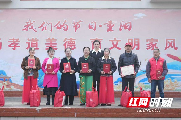 活动现场为“孝老爱亲之星”“志愿服务之星”“都管之星”等颁奖。彭发美、沈秋红、肖立云、倪建国、张治国、祁得美、符忠元获“孝老爱亲之星”,周梅香、郭绍群、童艳辉、罗光华、叶美群、刘双喜、芦葵球获“志愿服务之星”,张国财、付建仁、陈再春、陈可应获“都管之星”。